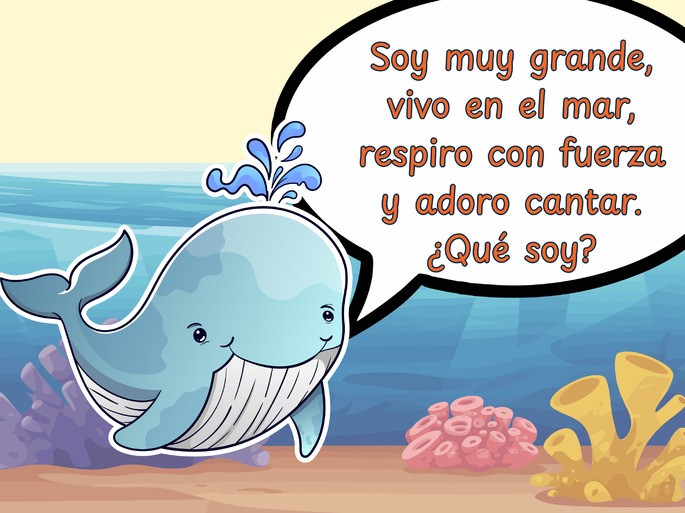 1. Soy muy grande, vivo en el mar, respiro con fuerza y adoro cantar. ¿Qué soy?