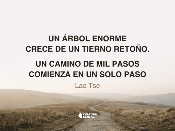 Un árbol enorme crece de un tierno retoño. Un camino de mil pasos comienza en un solo paso.